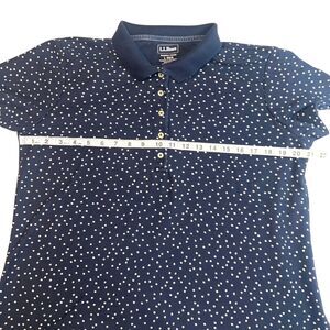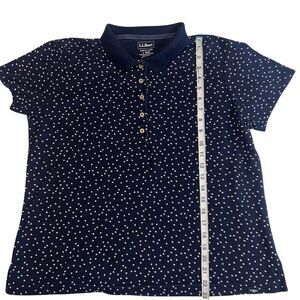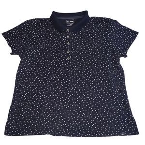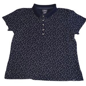 LL Bean Polo Womens Large Slightly Fitted Blue Polka Dots Classic Casual Top