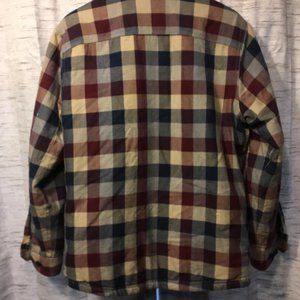 Slightly fitted with PrimaLoft quilted lining, maroon blue and khaki plaid. Size medium regular. Excellent condition. Measurements (approx): chest 24"; length 29"; sleeve 25".