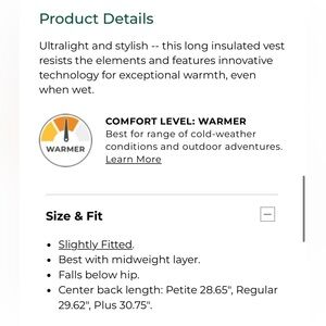L.L. Bean |PrimaLoft Packaway Long Vest | Size: XL