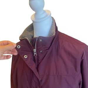 Stay cozy and stylish this winter with this L.L. Bean Puffer Insulated Fleece Lined Burgundy Coat
