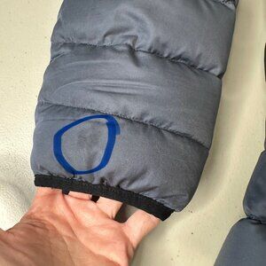 Jacket has two small stains, one in front and one in sleeve cuff area. See photos.