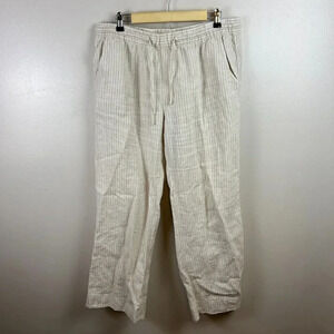 L.L. Bean Pull On Linen Pants Size 16 Petite Beige Stripes Minimal Lagenlook