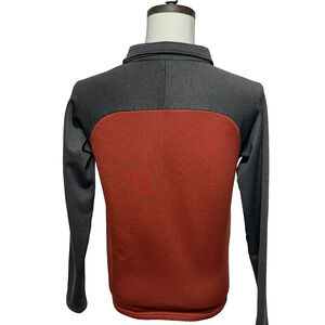 L.L. Bean Pullover Mens Small Rust Orange Gray Mountain Jacket Sweater Sweatshirt Fleece 1/2 Zip Colorblock Slightly Fitted Long Sleeve Gorpcore Outdoors