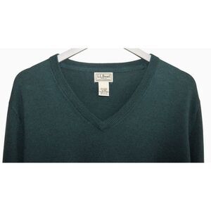 L.L. Bean Pullover Sweater Cotton Cashmere Green V-Neck XL