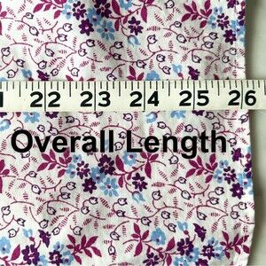 L.L.Bean women's size Large blouse is in excellent condition. Purple, blue and white floral shirt. Button front with long sleeves and one-button cuffs with contrasting gingham print. Shirt tail hem. 96% Cotton, 4% Spandex; Machine Wash. Measurements in photos.