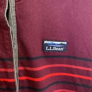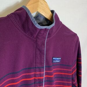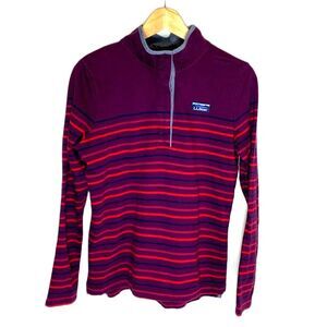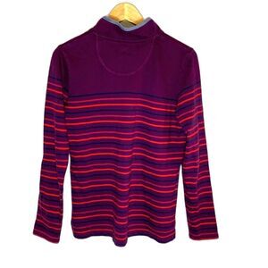 L.L. Bean Purple Red Black Striped Cotton Henley Button Front Rugby Shirt Size S