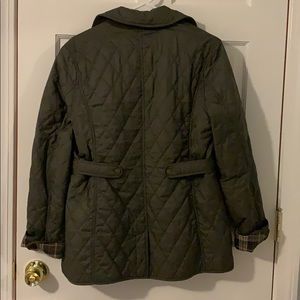 gently used, in very good condition! Olive green color with plaid inner lining. Quite warm, from smoke free home.