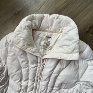 L.L. Bean Quilted Puffer Parka Coat Women Sz L White W Red Stain Goose Down Long