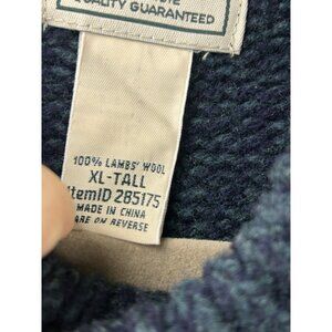 LL Bean Ragg Lambs’ Wool Sweater Men XLT Navy Blue Henley Neck Classic Fisherman