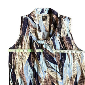 LL Bean Rayon Sleeveless Dress Abstract Leaf Pattern Fabric Tie at Neck, Size 10