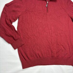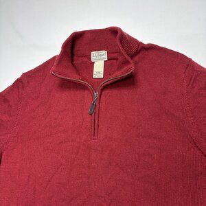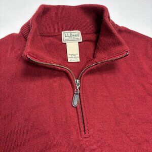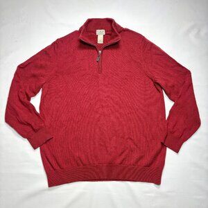 LL Bean Red 100% Merino Wool 1/4 Zip Knit Pullover Sweater 285158 Mens XL-Reg