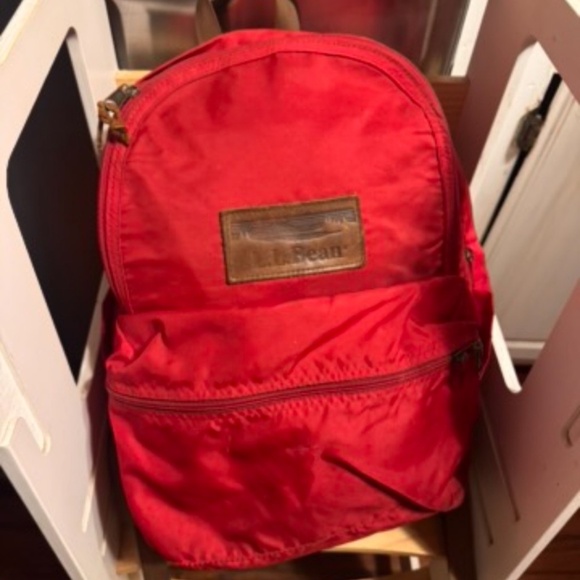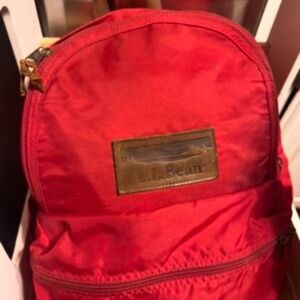 Stylish L.L. Bean backpack. Vibrant red color. Durable material. Perfect for daily use.