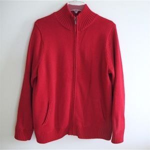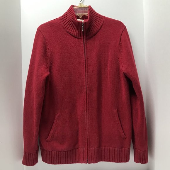 L.L. Bean Red & Blue Plaid Flannel Lined Full Zip Cardigan Sweater