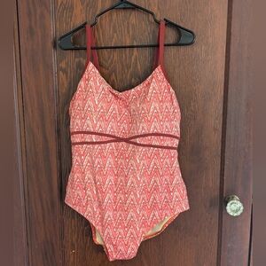 L.L Bean Red Flattering One Piece Swimsuit Size 16