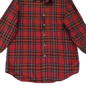LL Bean Red Plaid Flannel Button-down Shirt Long Sleeve Men's Size Medium Made in USA 100% Cotton