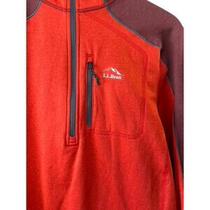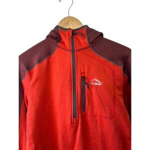 LL Bean Red Slightly Fitted Long Sleeve 1/2 Zip Hooded Pullover Men's Medium