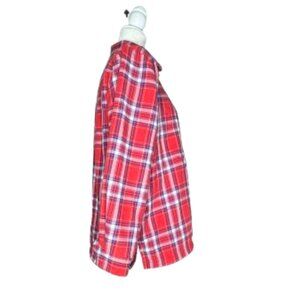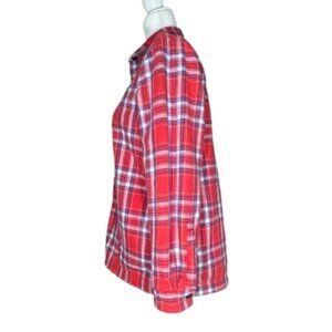 L.L. Bean Red White Blue Plaid Fleece Line Button Up Long Sleeve Shirt