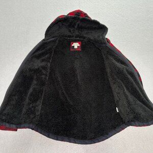LL Bean Relaxed Fit Flannel Shacket Sherpa Lined Red/Black Plaid Hoodie Medium