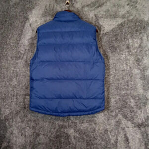 LL Bean men's reversible puffer Goose down vest. it's full zip. it does have to small holes by neck on the light blue size. it didn't go through, so the other side, you can't see it. other than that, it is in good condition...approx measurements pit to pit 22" length 24"