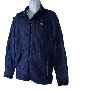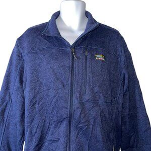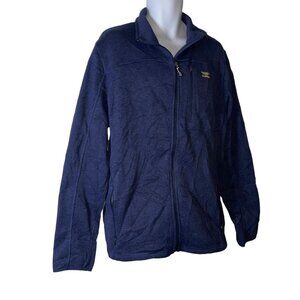 LL Bean Ribbed Cardigan Sweater Mens XL Big Tall Blue Pockets Logo Fleece Lined