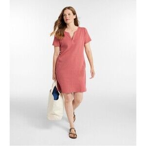 LL Bean Rocky Coast Slub Knit Split Neck Dress, NWT, Blue, Size MEDIUM