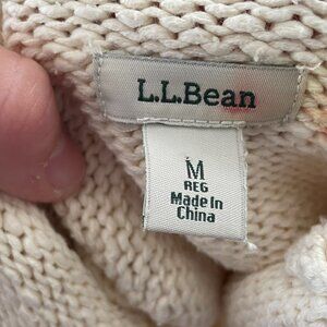 LL Bean Roll Neck Fisherman Pullover Sweater M Cream Cotton Oarsmen Mock Neck