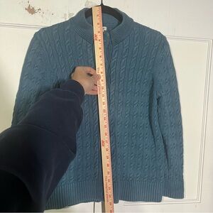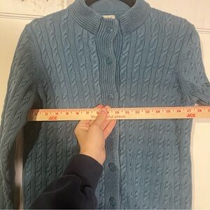 L.L. Bean Rope Cardigan Button Down Blue Cable Knit Size MP Cotton Classic Prep
