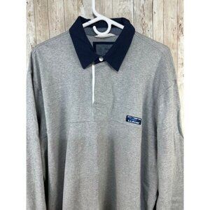 L.L. Bean Rugby Polo Shirt Men XL Hether Gray Blue Long Sleeve Concealed Button