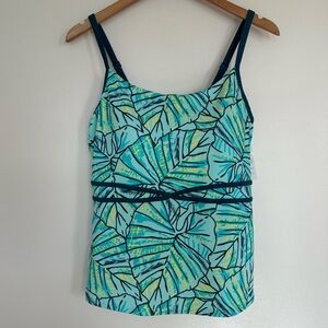 L.L. Bean Swimwear Patterned Tankini Top Size 14 Beach Glass Tropical Leaves