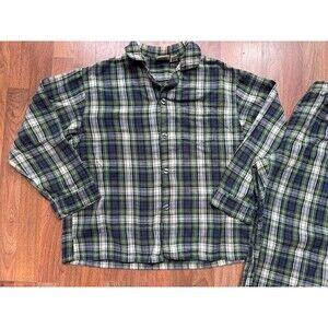 LL Bean Scotch Plaid Flannel Pajama Shirt Pants Set 107923 Men XL Blue Green