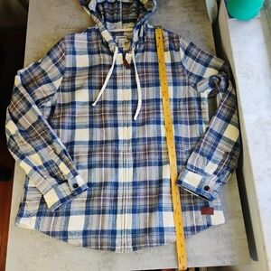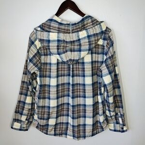 LL Bean Scotch Plaid Flannel Shirt Relaxed Fit Zip Hoodie Granola Size Small