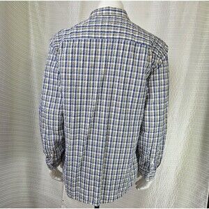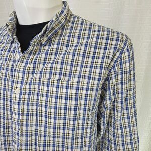 LL Bean Seersucker Textured Shirt Blue Yellow Plaid Button Down Men's LT