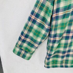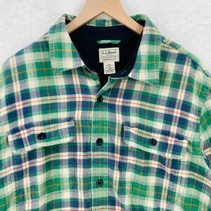LL Bean Shacket Mens Large Regular Fleece Lined Green Plaid Flannel Shirt Jacket