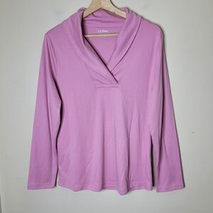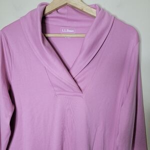 Comfy and classic, this L.L. Bean shawl collar pullover top is the perfect lightweight layer for everyday wear. Crafted from 100% cotton in the shade Rose Shadow (soft pink), it features long sleeves, a shawl collar neckline, and a slightly fitted shape that hits at the hip.
