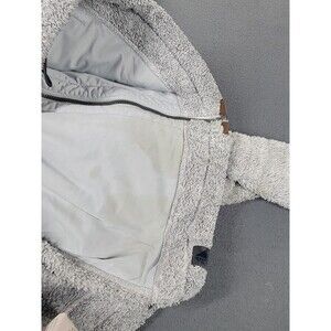 LL Bean Sherpa Fleece Jacket Womens XL Gray Full Zip Suede Trim Pockets Lined
