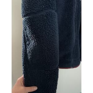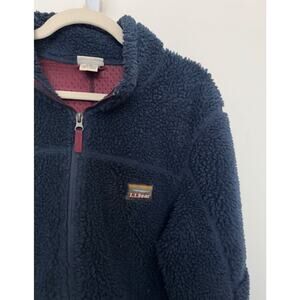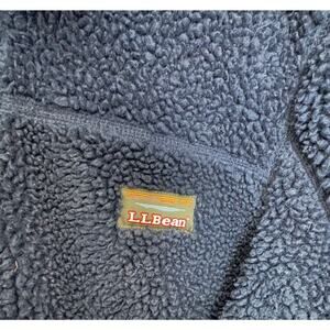 LL Bean Sherpa Fleece Mountain Jacket Full Zip Deep Pile Retro Navy Blue Men's L