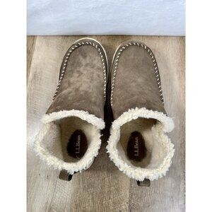 LL Bean Sherpa Lined Mountain Slippers Womens 10 Brown Suede Leather Booties Mocs. Gently used with no flaws found. Fast shipping!