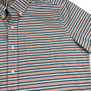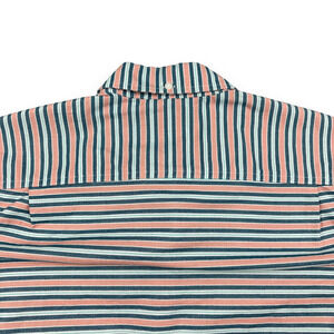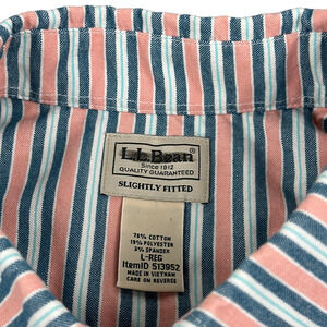 LL Bean Shirt Adult LARGE Salmon Pink Pastel Striped Button Up Mens Gray Blue