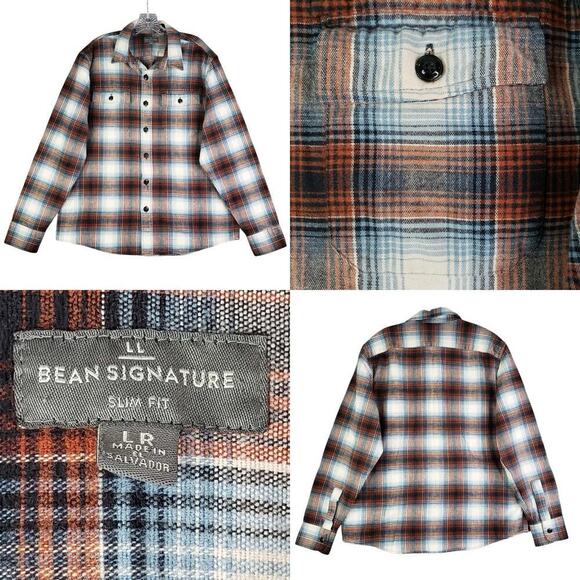 LL Bean Shirt Flannel Snap Womens Size Large Fall Plaid Fleece Slim Shacket