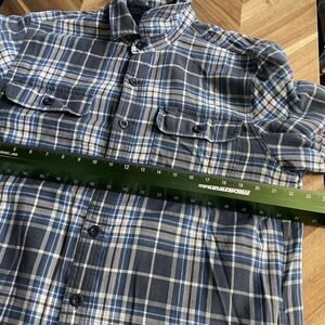 This L.L. Bean shirt jacket is a versatile addition to any wardrobe. Featuring a plaid pattern and button closure, this shirt is perfect for any casual occasion. The long sleeves and spread collar provide a classic look, while the flannel fabric and fleece lining offer comfort and warmth. Made of cotton, this shirt jacket is durable and easy to care for. It is a great choice for men who want a regular fit and a lined shirt that can be worn as a jacket.