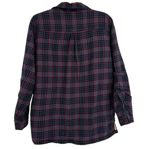 LL Bean Shirt Jacket Womens Size M Fleece Lined Flannel Plaid Button Up Blue Red