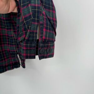 LL Bean Shirt Jacket Womens Size M Fleece Lined Flannel Plaid Button Up Blue Red. Collared. Cotton. Small side slits. One breast pocket. Heavyweight. Blue green red plaid. Bust 44. Length 28. Measurements are approximate. Very good preowned condition.
