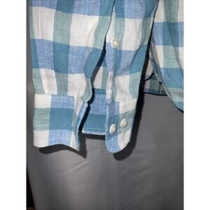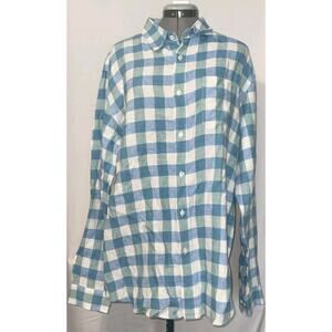 LL Bean Shirt Men Large 100% Linen Windowpane Plaid Button Down Blue