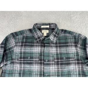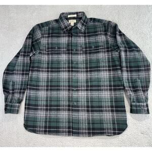 LL Bean Shirt Men Large Green Plaid Chamois Flannel Vintage Heavyweight Trad Fit