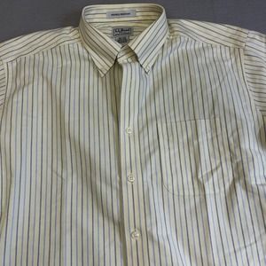 LL Bean Shirt Mens 16.5 Tall Button Down Striped Short Sleeve Cotton No Wrinkle