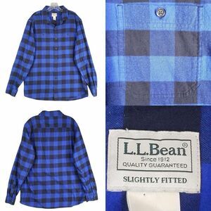 LL Bean Shirt Mens Blue Plaid Flannel LS Button Down Size Large Tall LT