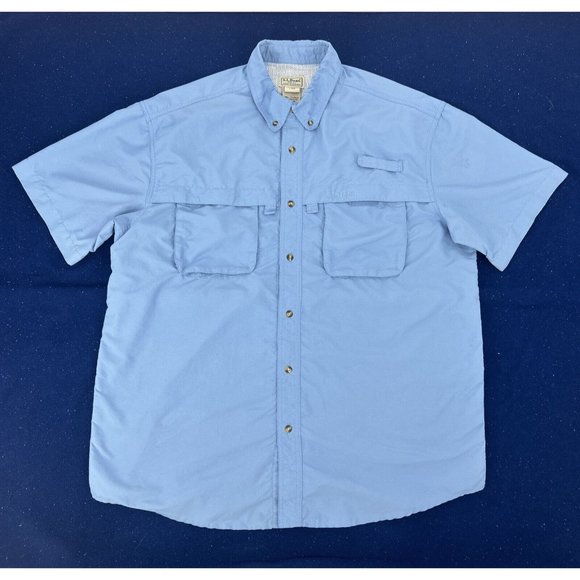 L.L. Bean Shirt Mens L Reg Blue Short Sleeve Button Down Fishing Vented Pockets