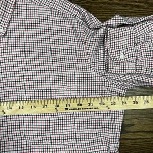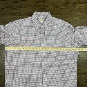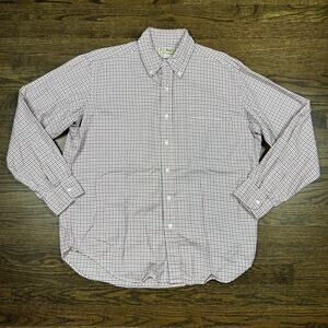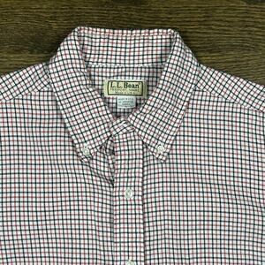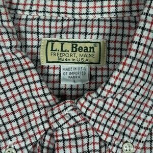 LL Bean Shirt Mens Large Cotton Red Black Stripe Button up Long Sleeve Classic