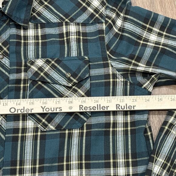 L.L. Bean Shirt Mens Large Green Plaid Snap Wool Blend Elbow Patch Western