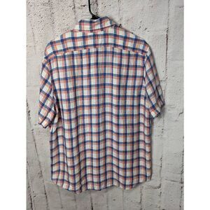 L.L. Bean Shirt Mens Large L Blue White Button Up Plaid Linen Slightly Fitted Casual